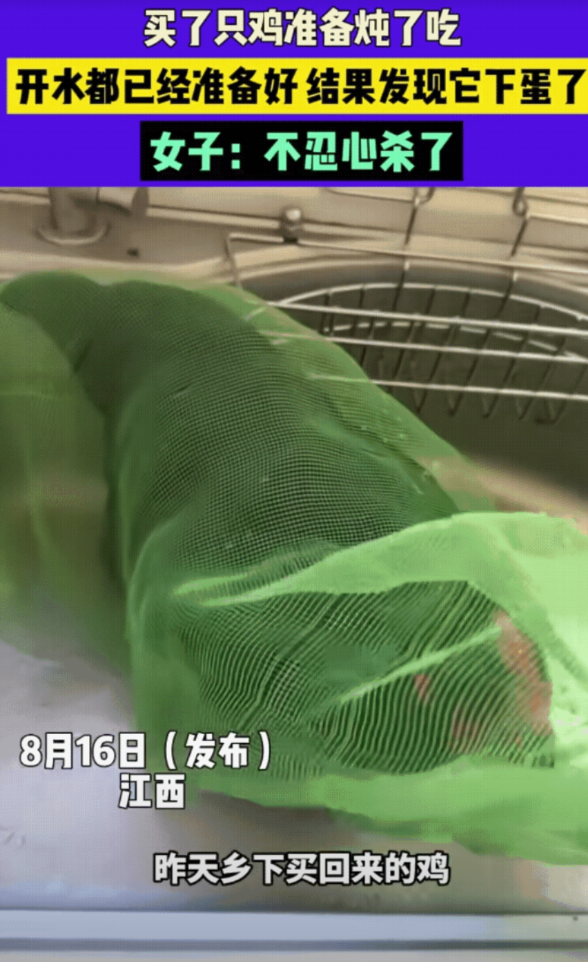 赚大发了!江西一名女子想吃鸡肉了,因觉得饲料喂出来的鸡不好吃,于是便跑到乡下农村去购买了一只土鸡回来,让女子没想到的是,第二天她打算把鸡宰了吃,结果抓鸡出来的时候,发现它头天晚上居然下了一个蛋。 女子瞬间就不忍心了,即使水烧开了,最后决定还是不宰它了,先养着吧!