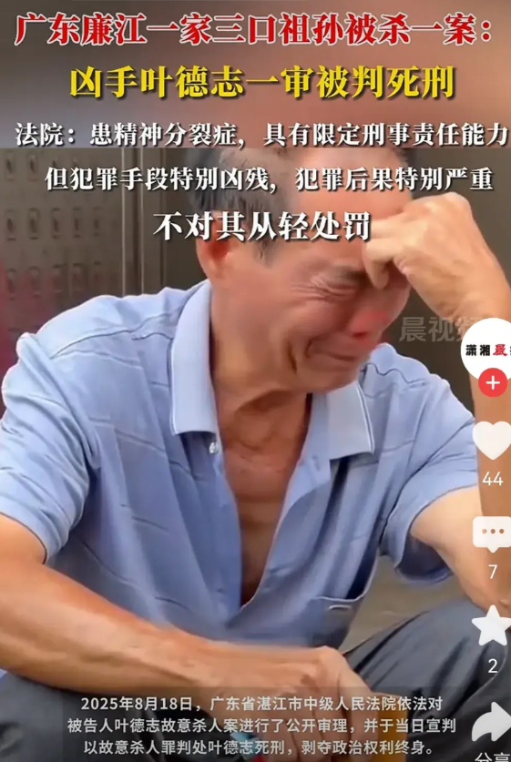 事后,他被鉴定为精神病患者,但是具有限定刑事责任能力。鉴于他的犯罪手段特别凶残,后果特别严重,一审被湛江市中级人民法院判处死刑,并且立即执行。