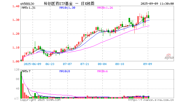 9月9日,截止午间收盘,科创医药ETF基金(588130)跌1.35%,报1.313元,成交额1146.10万元。科创医药ETF基金(588130)重仓股方面,联影医疗截止午盘跌2.97%,百济神州涨2.15%,惠泰医疗跌2.49%,百利天恒跌3.60%,艾力斯涨1.51%,泽璟制药跌1.05%,君实生物涨2.55%,华大智造跌3.01%,博瑞医药跌2.27%,特宝生物跌1.92%。