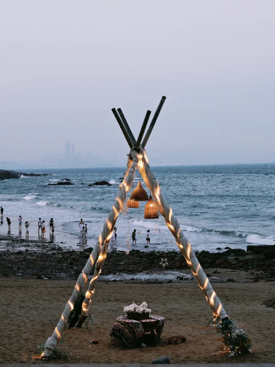 3️⃣私人沙滩:人少沙细,退潮时还能挖小螃蟹,拍出度假感满满的照片