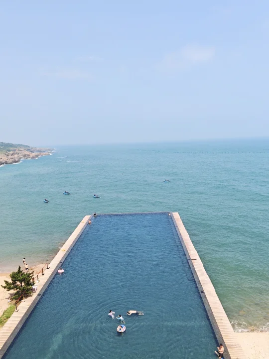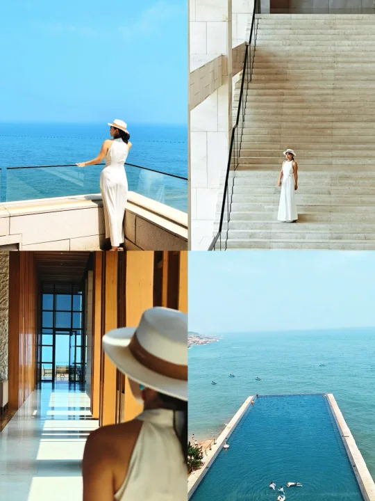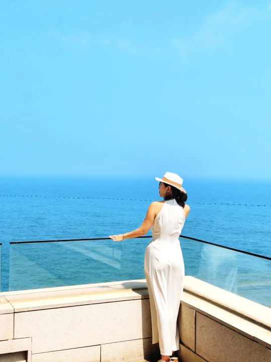 2️⃣无边泳池:海天一色的蓝作为背景,俯拍角度超级出片
