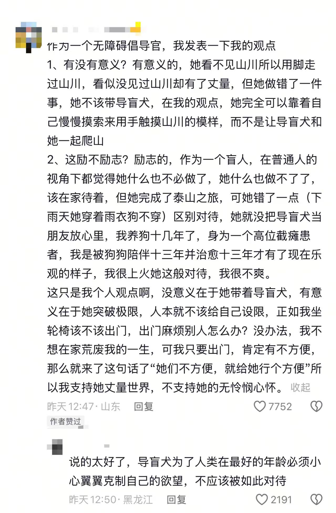 大皖新闻记者注意到,9月16日有抖音博主发布了一段导盲犬陪视障人士爬泰山的视频,其初衷是记录视障人士挑战自我、寻求人生意义的积极一面。然而视频发布后短时间内便获得极大关注,不少网民纷纷质疑:徒步登泰山对普通人而言都非易事,而这一行动更是会给导盲犬的身体造成一定损伤。