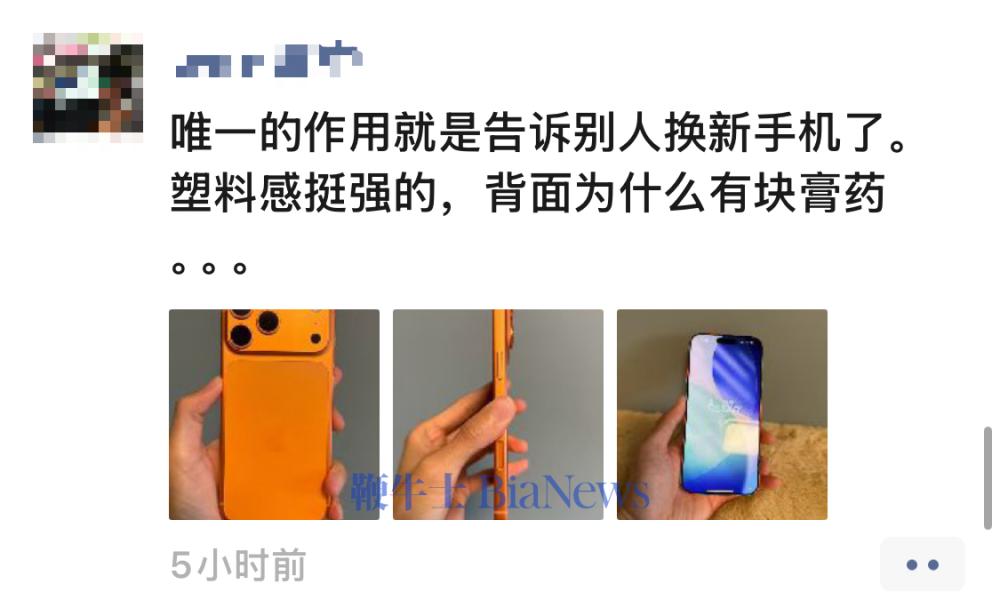 对此,笔者朋友圈里有人称,真机上手塑料感强,橙色系唯一作用就是告诉别人换了新手机,而对真机背面的评价更是戏称“像贴了块儿膏药”。