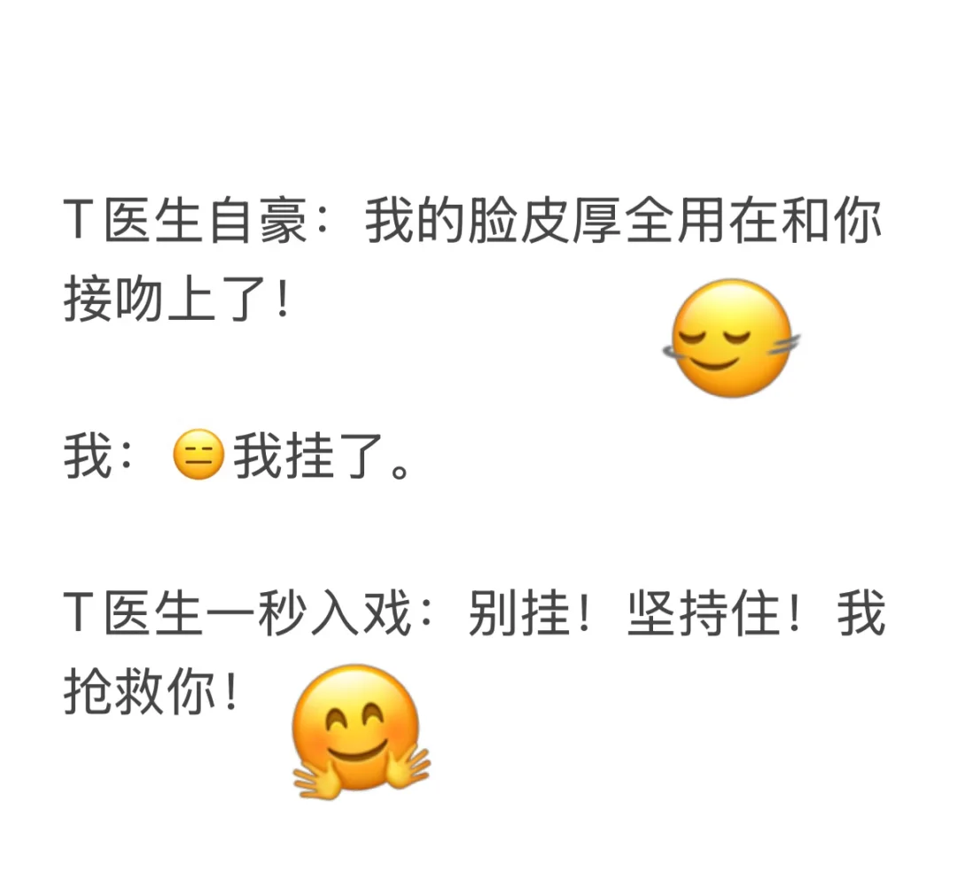 我:你有事没事!没事我挂了! T医生:有啊!抢救你!人工呼吸你!
