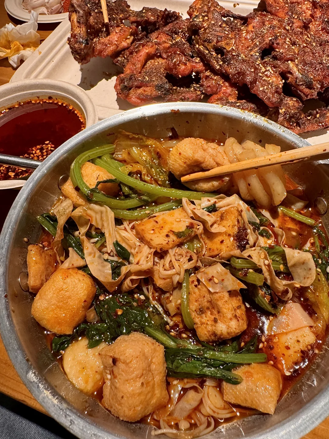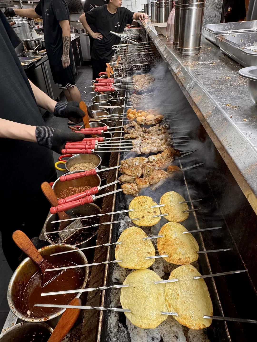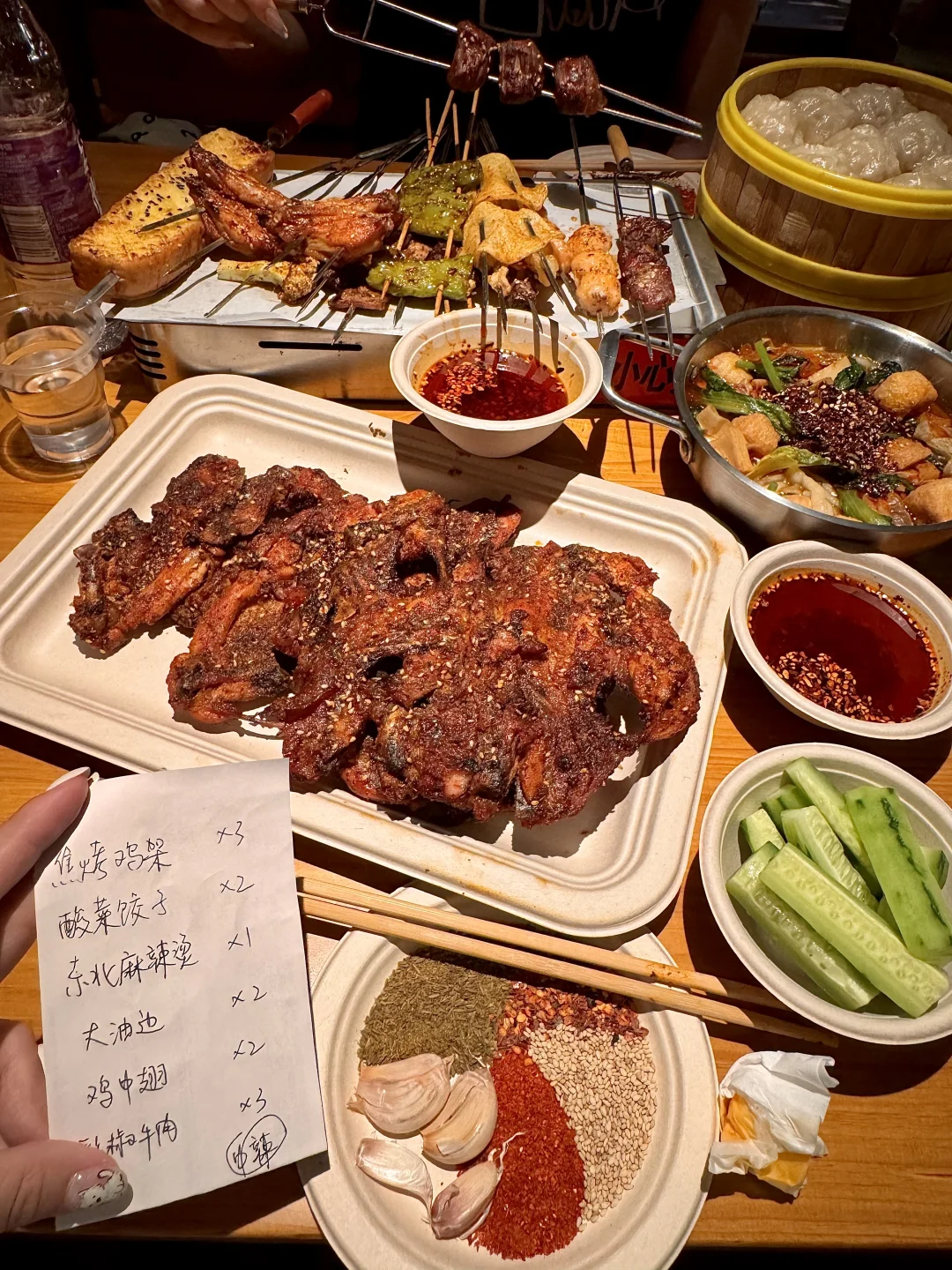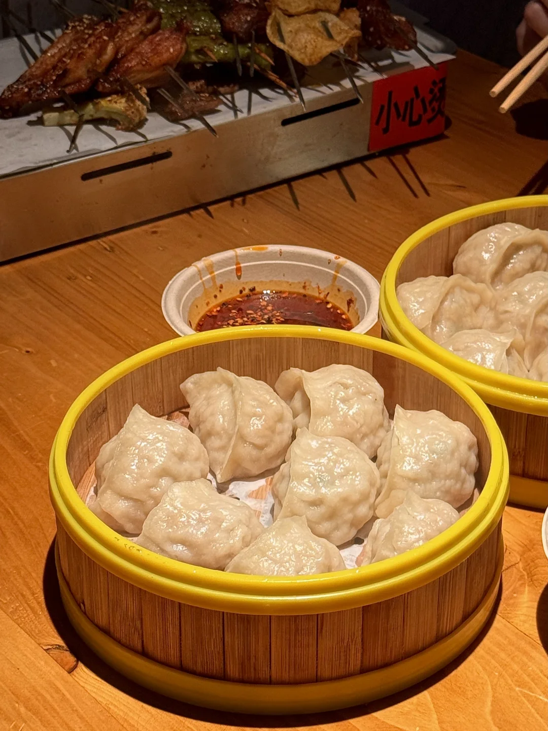 一周三刷!我心中东站附近最好吃的仙品! 东北酸菜大饺!胃小的吃四五个就饱了😅皮薄肉厚一口下去疯狂爆汁流油!配上辣椒面和鲜蒜子!好绝啊啊! 叫周姐📍烤鸡架!还有大油边、彩椒牛肉、烤虾滑…甜辣鲜香一吃一个不吱声 我太爱了😭