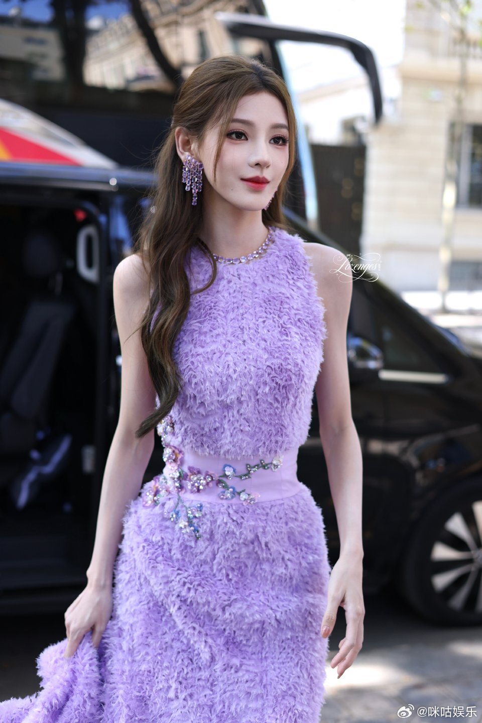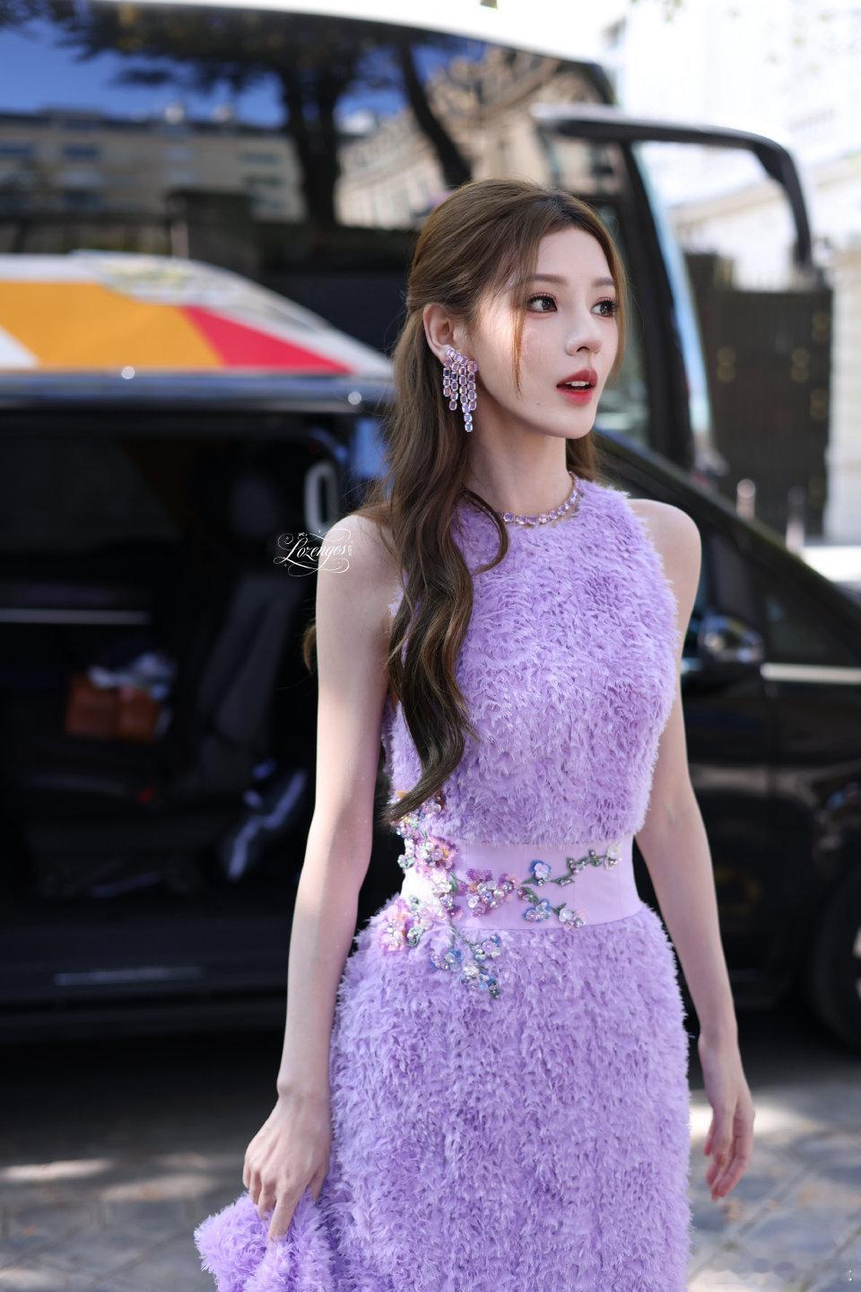 张予曦出个国怎么美成这样 张予曦巴黎时装周看秀造型出炉,出个国怎么美成这样[色][色][色]又轻轻秒了,一袭梦幻紫长裙好亮眼,只需一眼就定格美丽!