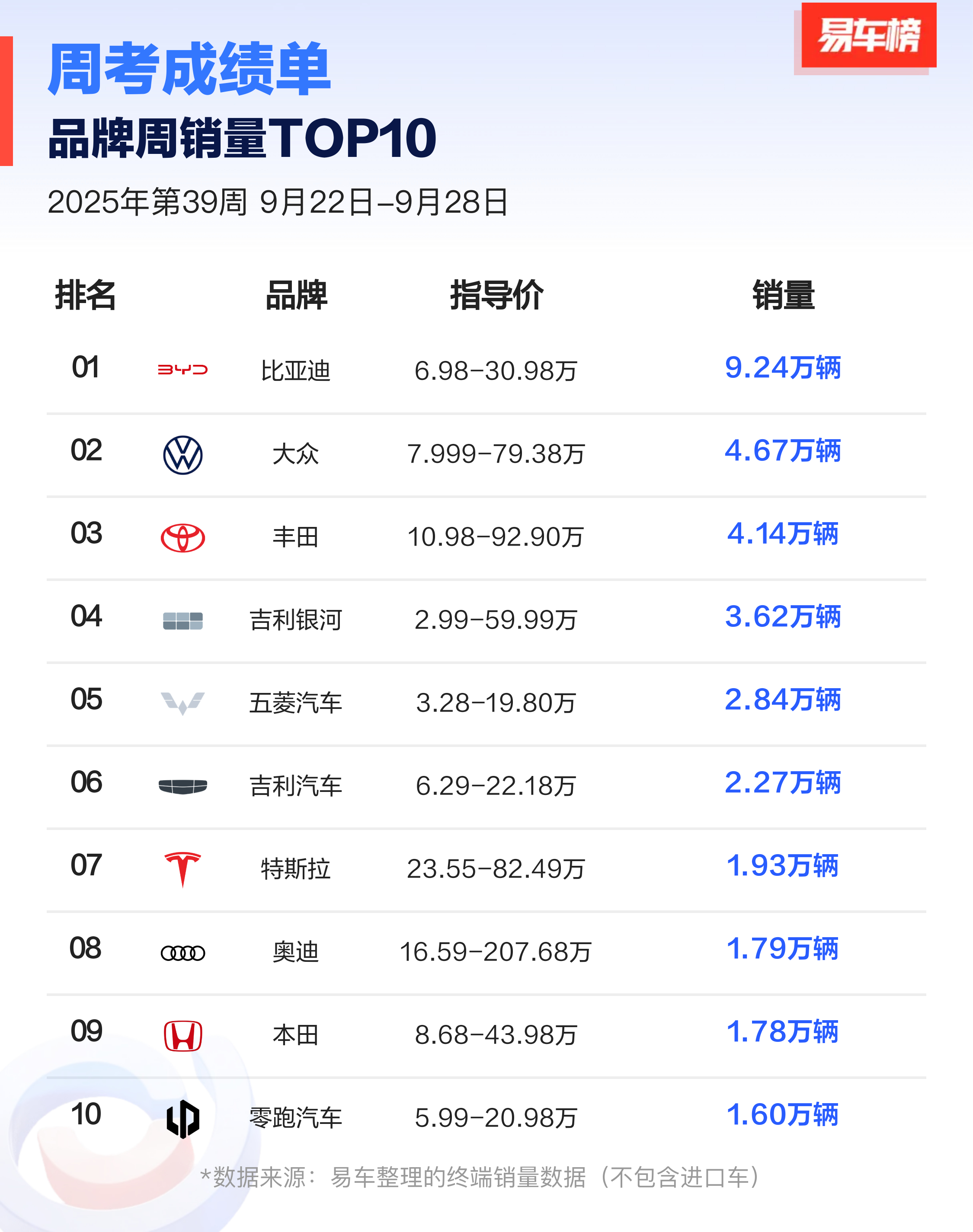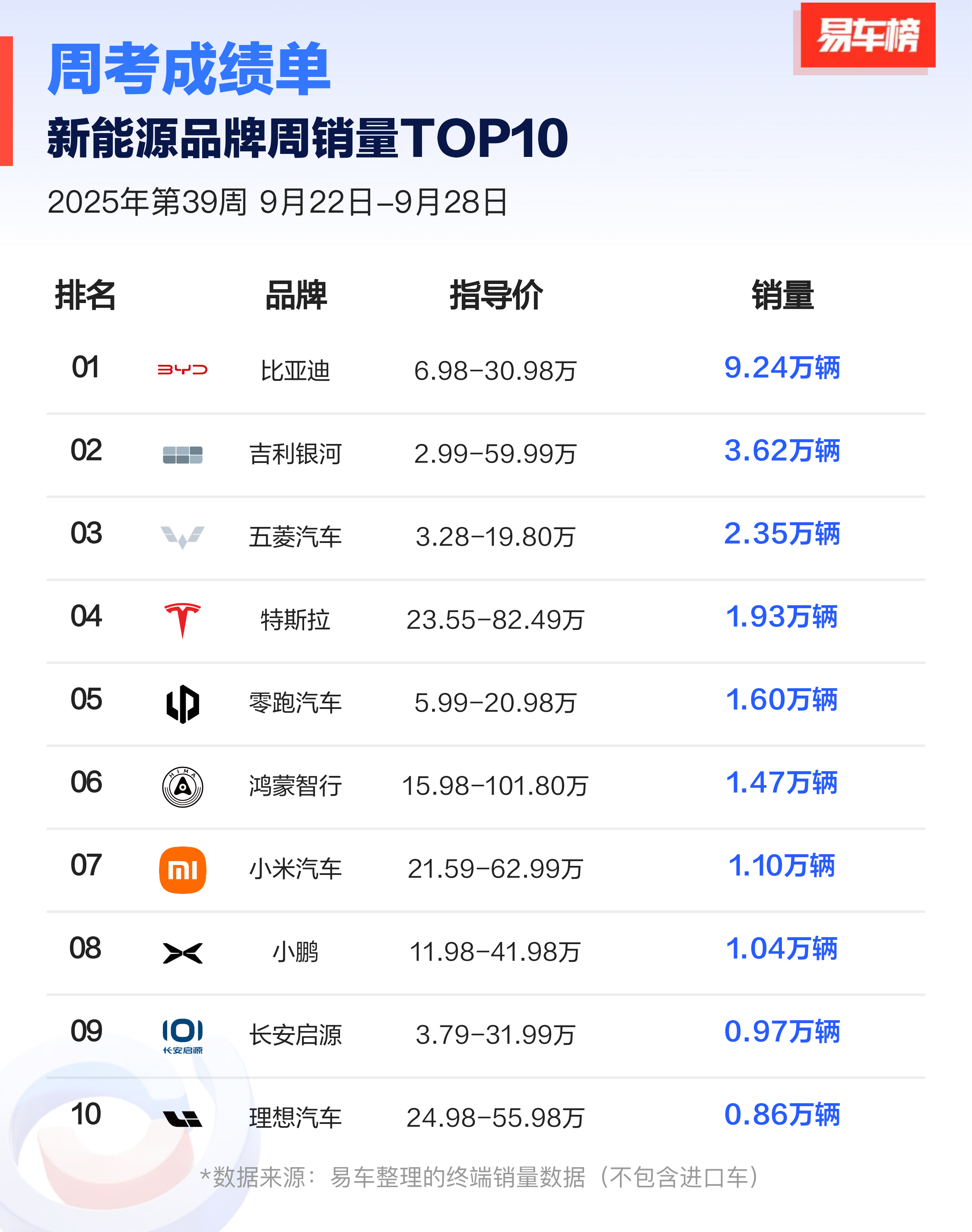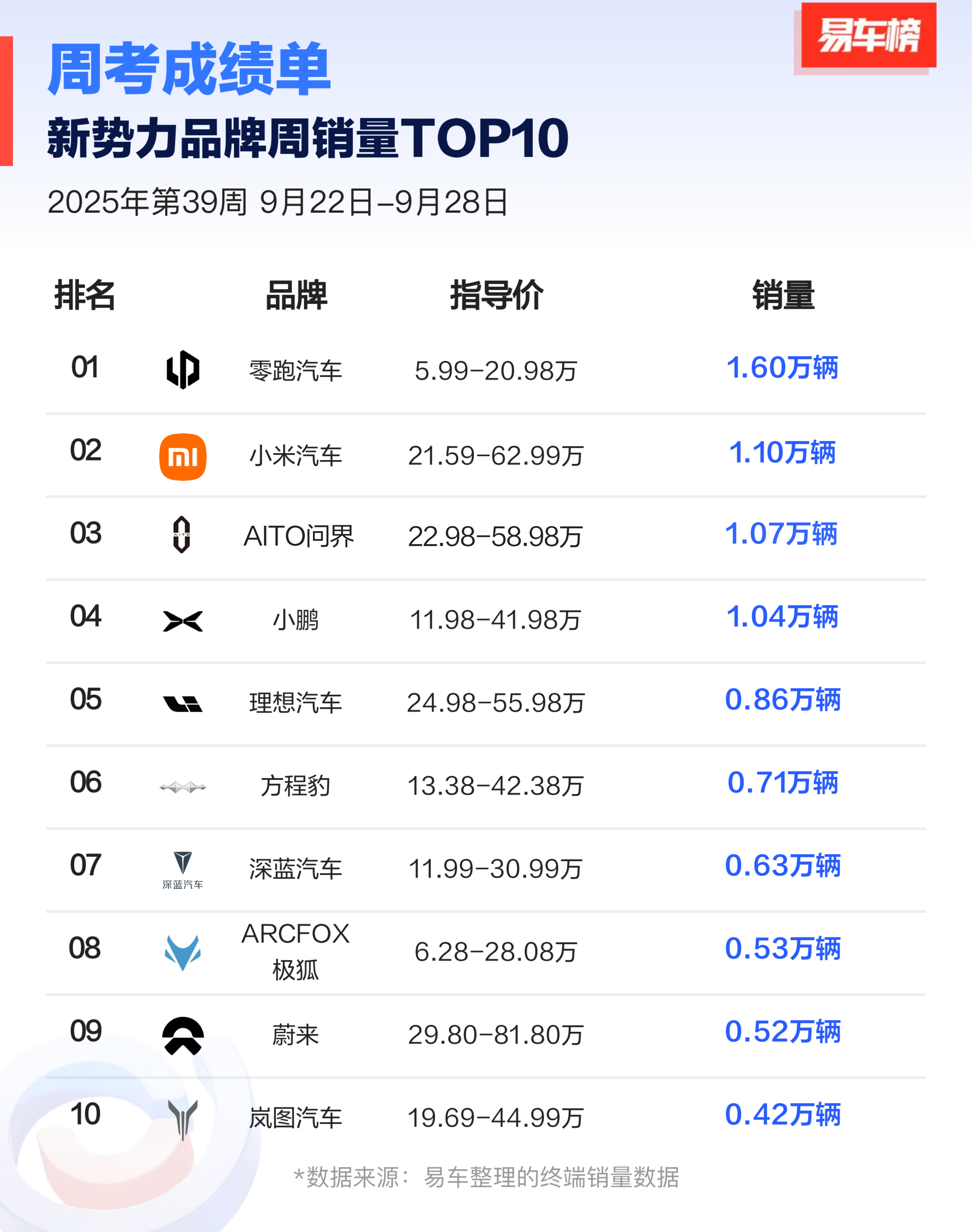 用户16xxx85 1 2025-10-01 00:48 智通财经APP获悉,周二,蔚来(NIO.US)涨6%,报7.65美元。消息面上,9月最后一周(9.22-9.28),受益于新款蔚来ES8开始交付,蔚来品牌销量实现翻倍暴涨,再次进入新势力榜单前十。值得关注的是,若叠加旗下乐道品牌3800辆、萤火虫品牌1800辆的销量,蔚来公司整体周销量已达到 1.08 万辆,不仅全面超越问界、小鹏、理想等新势力头部品牌,更一举跃升至新势力榜单第三位,展现出强劲的复苏态势。随着新款蔚来ES8后续产能进一步释放,蔚来的销量有望持续快速提升。