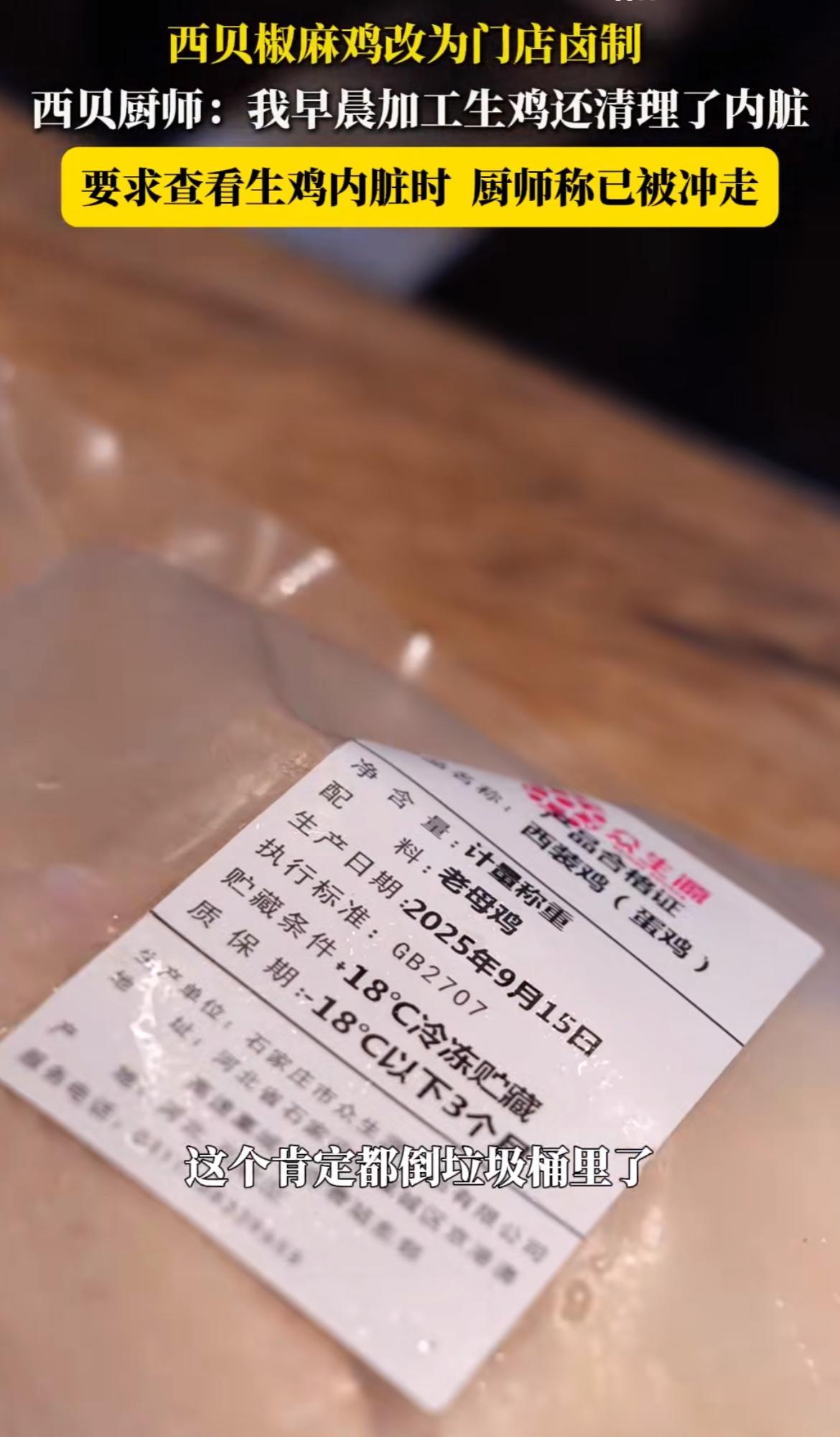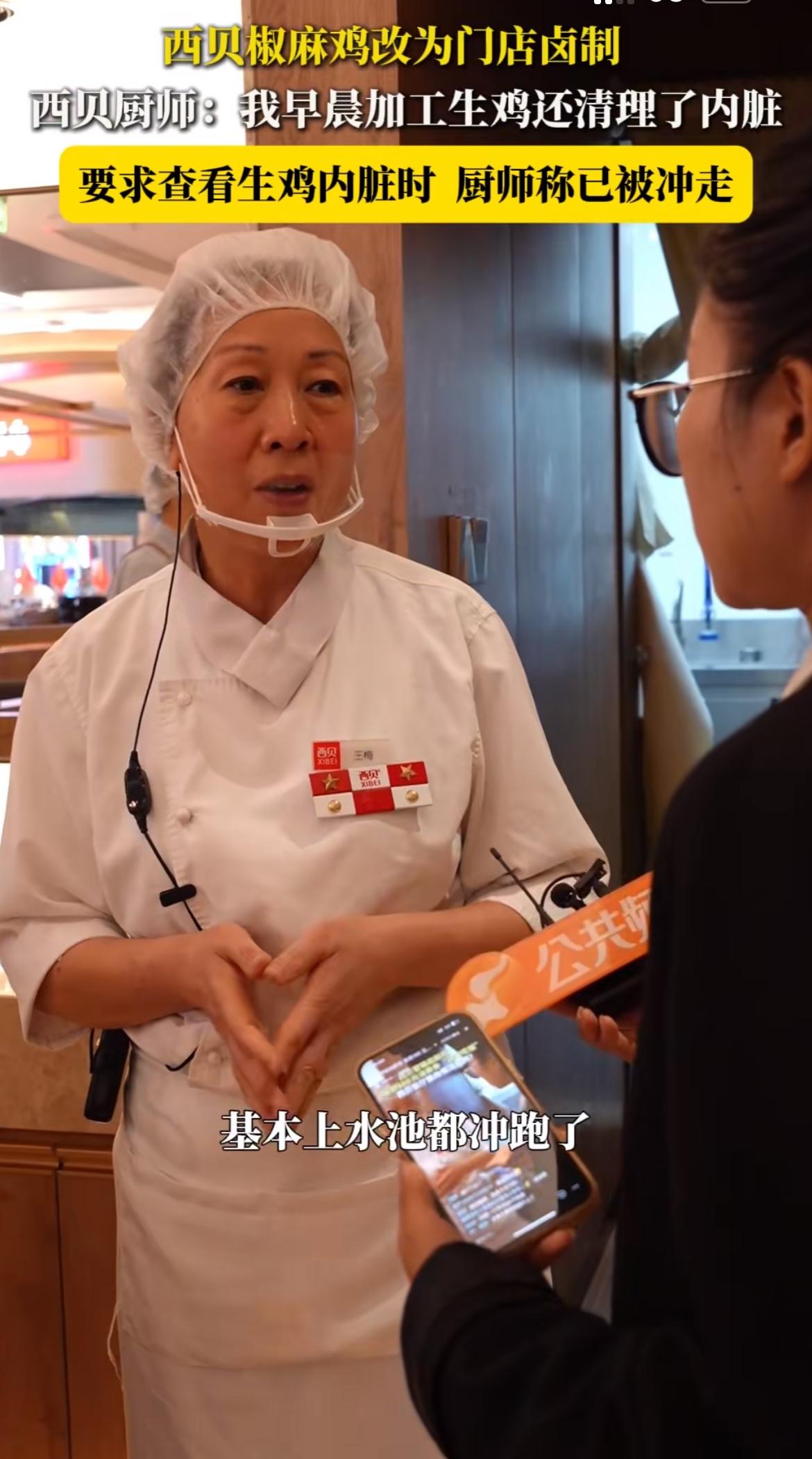 西贝的笑料比调料多! 9月30日,有记者到西贝门店用餐,想询问一下这家餐厅的食品是否是现做的,记者问鸡是现杀的吗?厨房大妈说是现杀的,杀了后卤制20分钟 记者又问那鸡的内脏去哪里了,大妈说扔垃圾桶里,记者问哪个垃圾桶,大妈又说基本冲走了! 记者回去后发了这条视频,有网友说西贝真会玩,自杀式欺骗消费者!