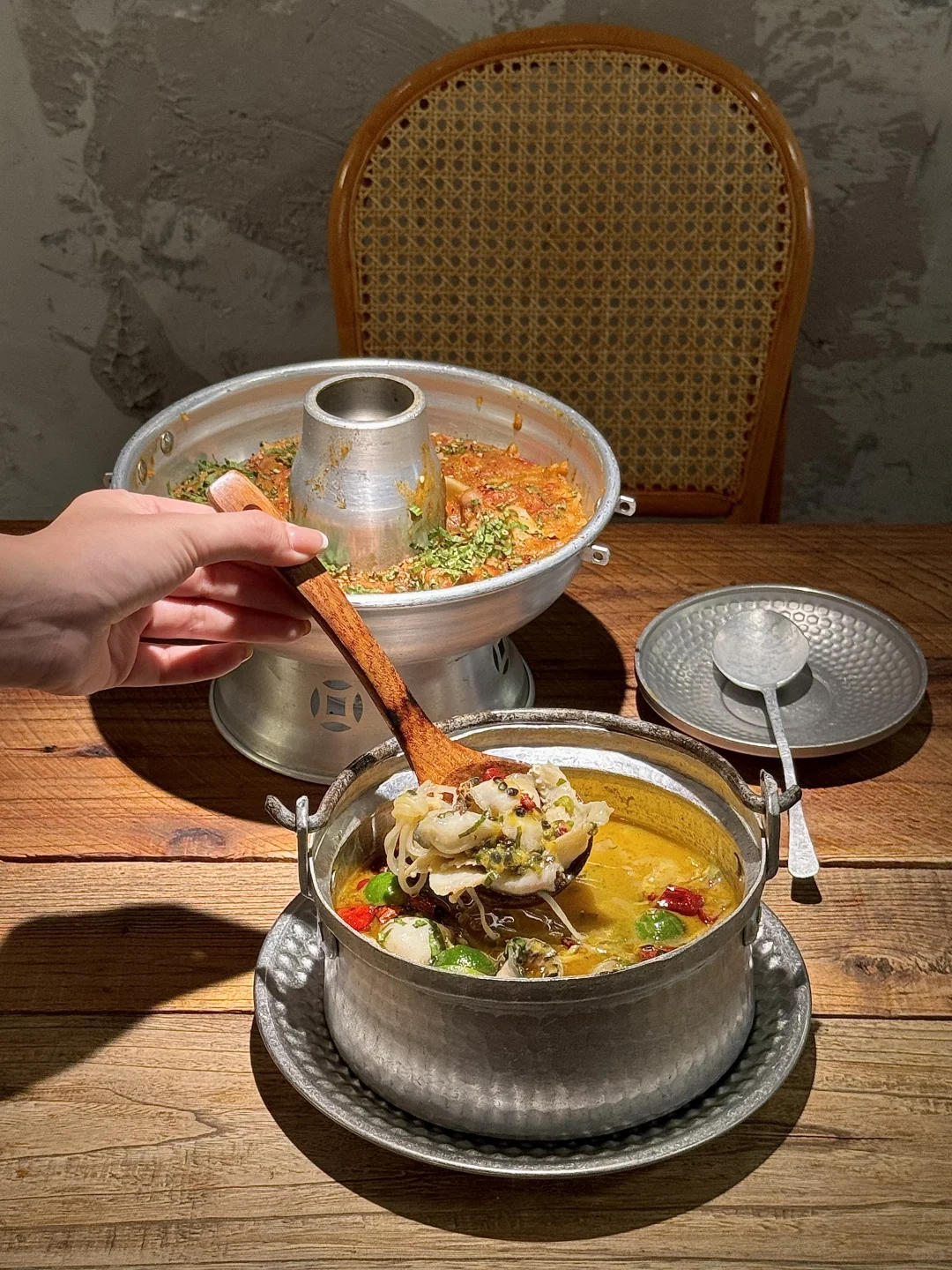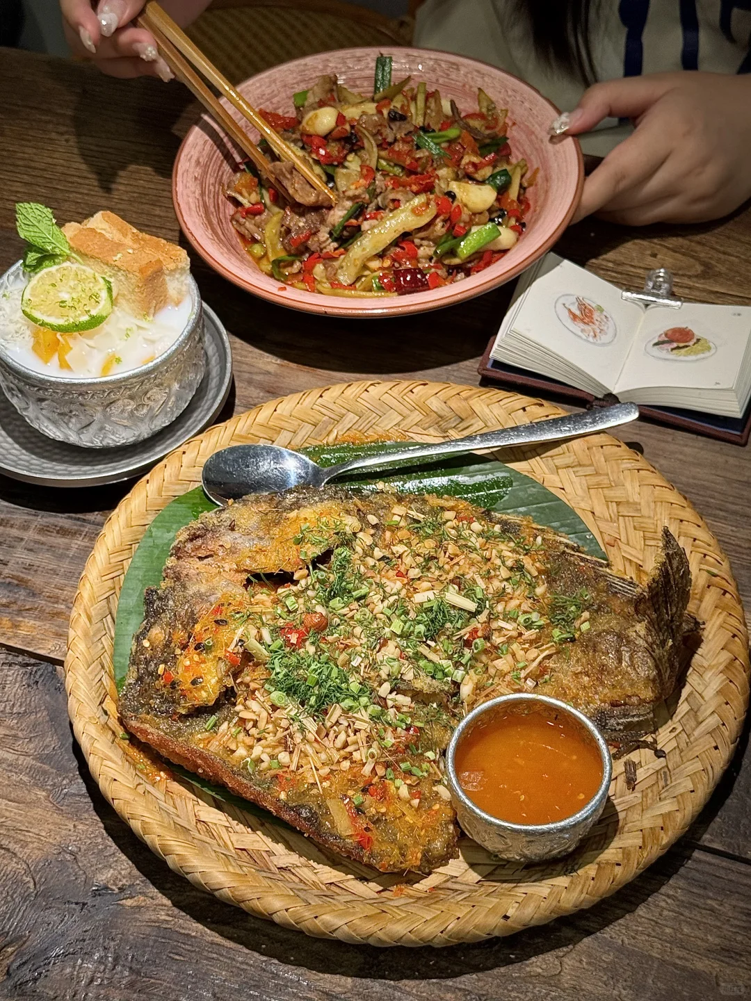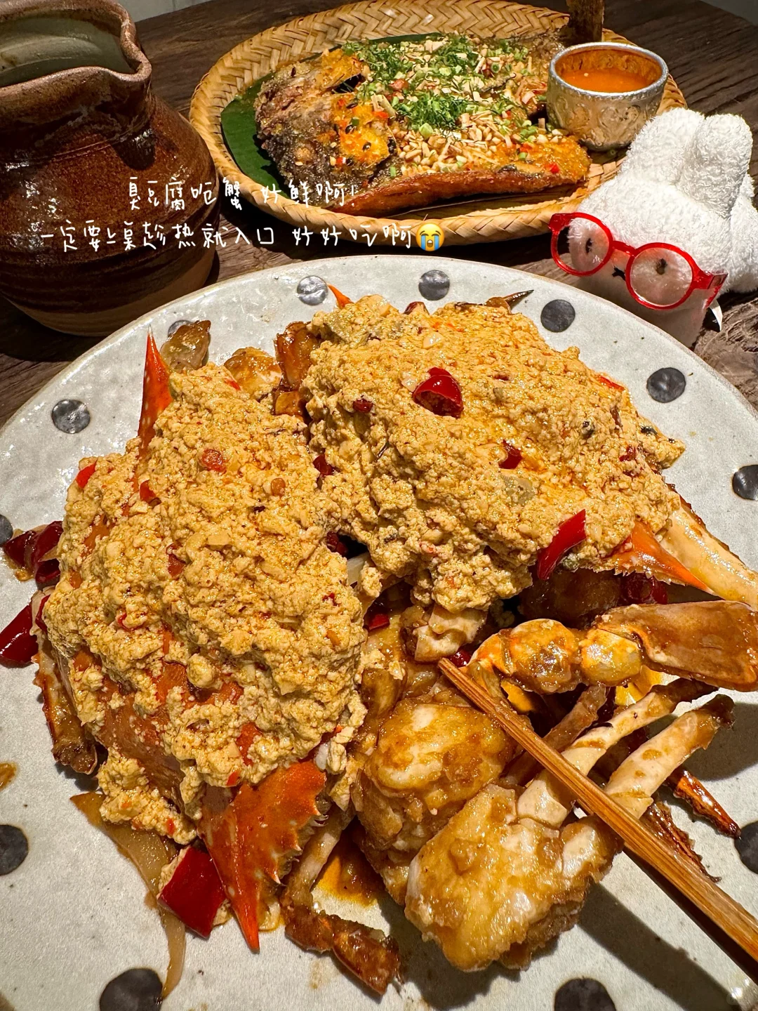 杭州我心中可以排前三的云南菜小馆!!就在滨江天街!!叫(📍阿喃边境小馆),进店仿佛误入清迈…不管是菜品还是环境我都愿意给满分!! 店里真的好有格调!木质的桌椅老式古朴,墙壁的挂画摆件简约街头…随手一拍都好好看,不管是约会还是分手都很合适!! 强推这个臭豆腐鱿鱼米线!一整只大鱿鱼q弹饱满,吃起来好过瘾啊😭还有臭豆腐呛蟹 鲜香入味也好绝!还有普洱花生冰、边境小卷粉、百香果蜂蜜饵块…每一道都好看又好吃!!
