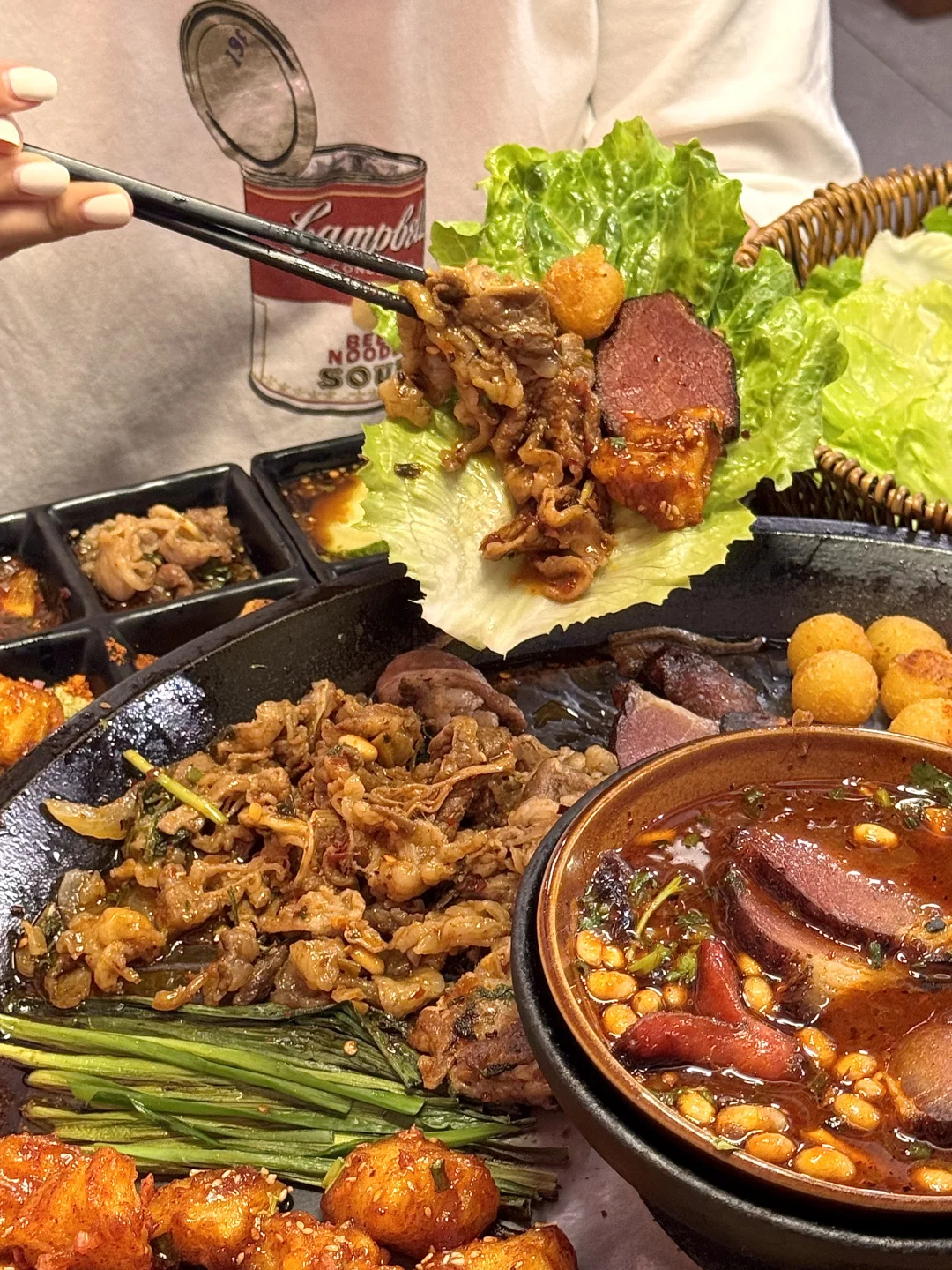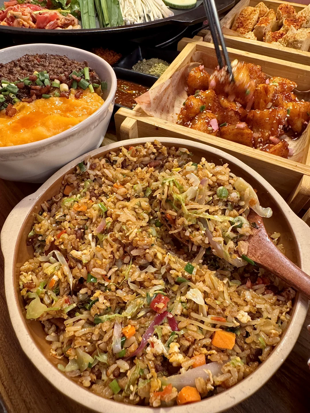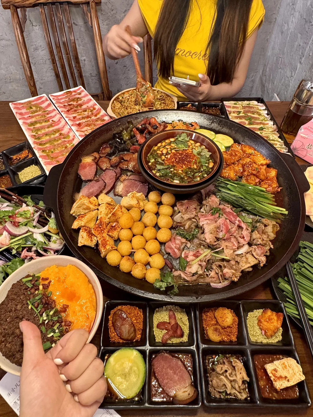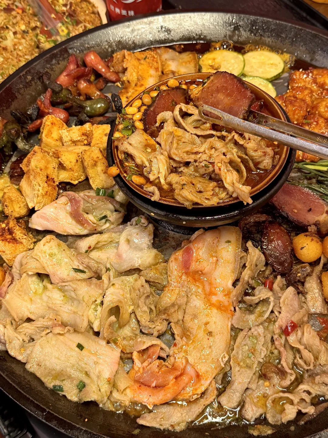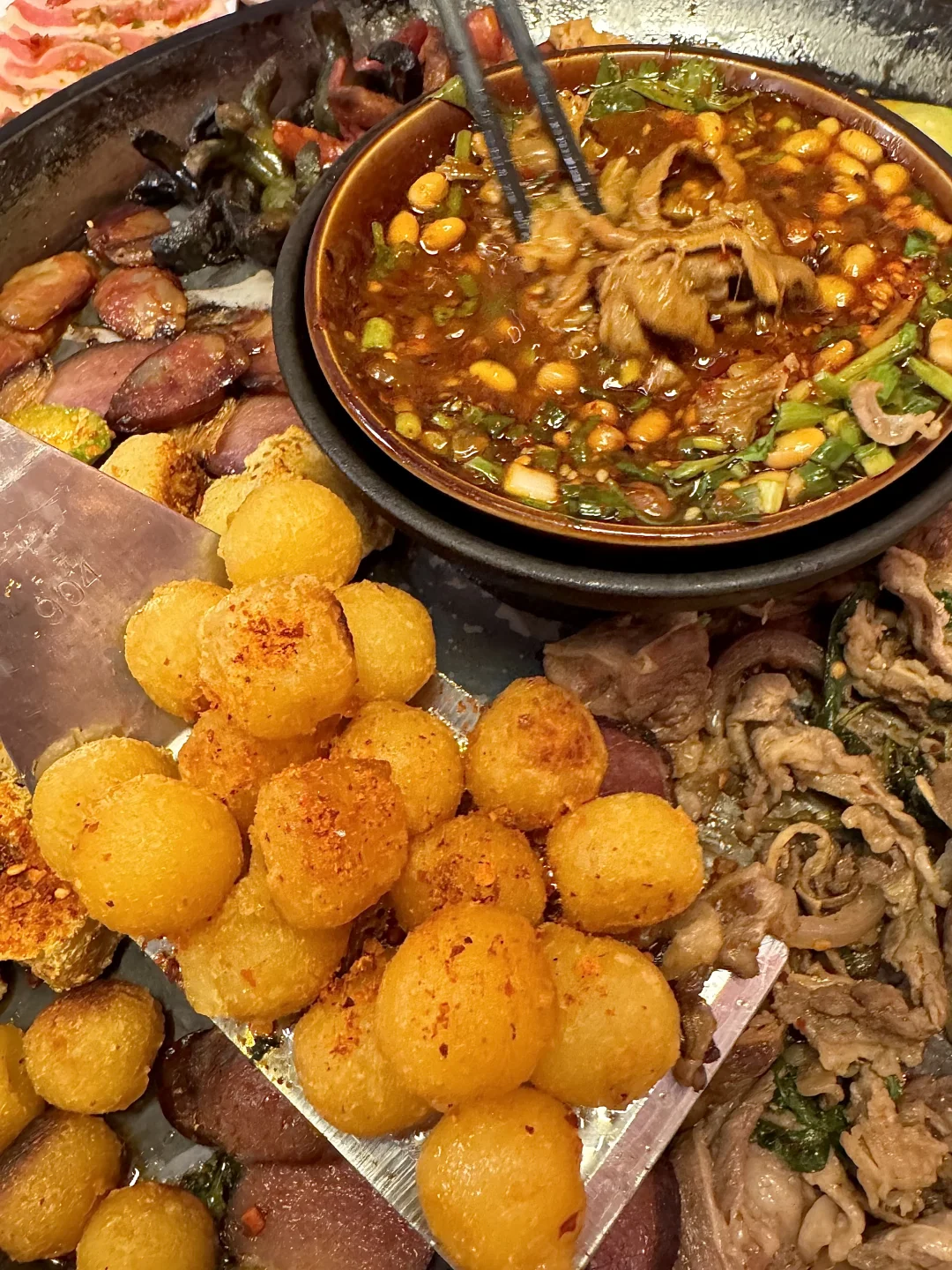 推荐牛肉、五花、腊味拼盘…烤得滋啦作响!我们还点了酸汤肉沫土豆泥拌粉、贵州炒饭、糖醋锅巴土豆、爆浆豆腐……一吃一个不吱声!!