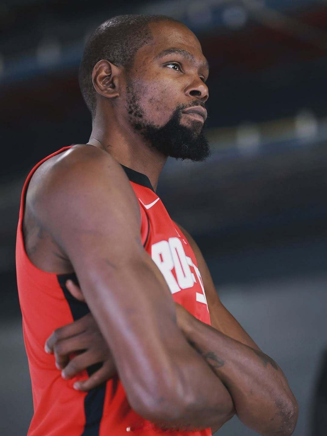 高情商,37岁的杜兰特将C位让给了阿门。火箭三巨头在拍摄定妆照的时候,原本杜兰