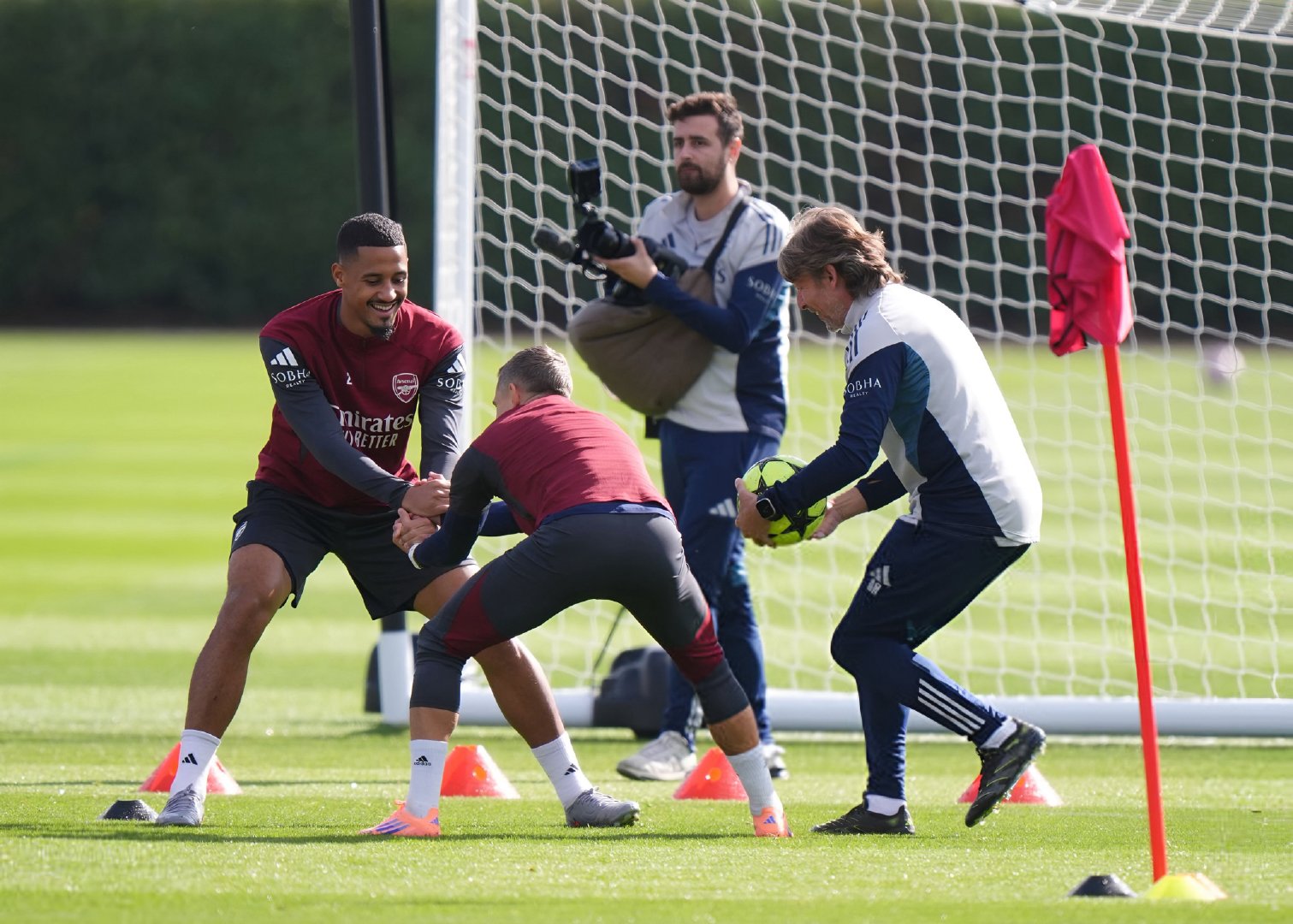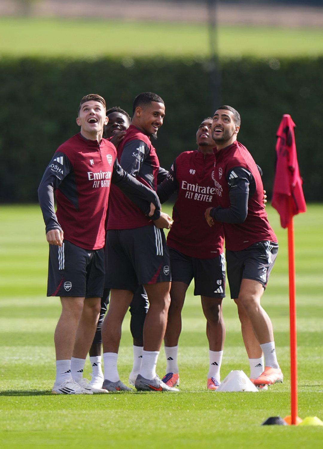 训练备战欧冠比赛。阿尔特塔赛前确认因卡皮耶和马杜埃凯仍无法上场,其他没什么新消息