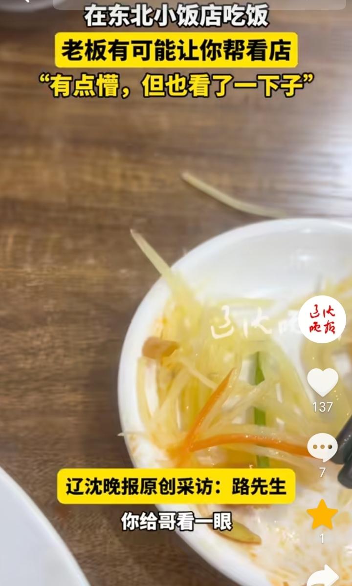 豪爽直接!辽宁,一男子和对象进饭店吃饭,结果饭店老板有事要出去,还让男子帮忙给看店。 据辽沈晚报报道,10月1日辽宁,一男子和对象进饭店吃饭,当时饭店就他俩人吃饭,饭店老板临时有事要出去送货,直接让男子给帮忙看一下店,男子也是没用拒绝,看就看会。 这才是人与人之间该有的信任,完全互不相识的人可以放心的把店交给对方看,一个放心交,一个也同意给看,可能这就是东北人的豪爽直接。 换做心眼多的饭店老板,有可能还不放心把店交给陌生人去看,他会自行脑补觉得这样不安全。 其实人与人之间的信任是彼此的,就是一些有心之人破坏了这种原有的信任,想要找回这种信任还是比较难的。