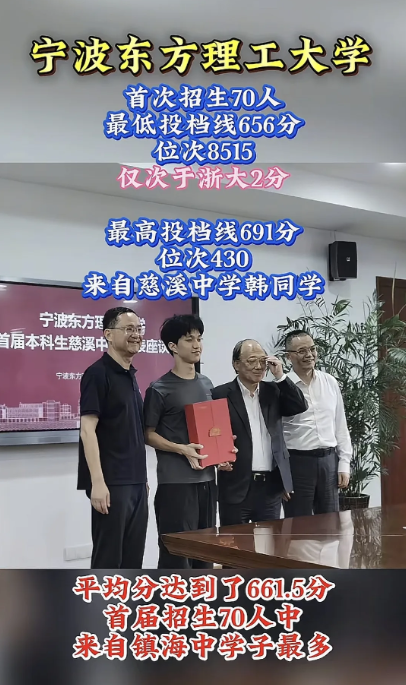 宁波这所民办高校火起来了!高考期间,全网都在调侃9万6一年学费的宁波东方理工大学,毕竟一般的家庭根本读不起,结果当投档线官宣之后,更是让网友们惊呼,这学校录取的学生都是天之骄子——最低投档线656,只收70人,分数直逼浙大! 说白了,刚开始还是有人质疑这个学校的教学质量,毕竟是民办高校,不过当学校的具体情况被曝光后,网友们也是被震惊到了,原来人家虽然学费高,但他们的学生每年都有9万6的奖学金,甚至还有出国交流的机会。 换句话说,其实这些被录取的学生,平时上学的花费也就是那些生活费,毕竟学费都被返还回去了,并且学校还设立了专项资金,就是为了让他们去海外顶尖高校开阔视野用的。 在我看来,网友们没必要听风就是雨,这所学校光是教师团队,就有15名院士加入,更不用说其他的“普通教师”了,对此大家怎么看,欢迎在评论区留言讨论,感谢支持!