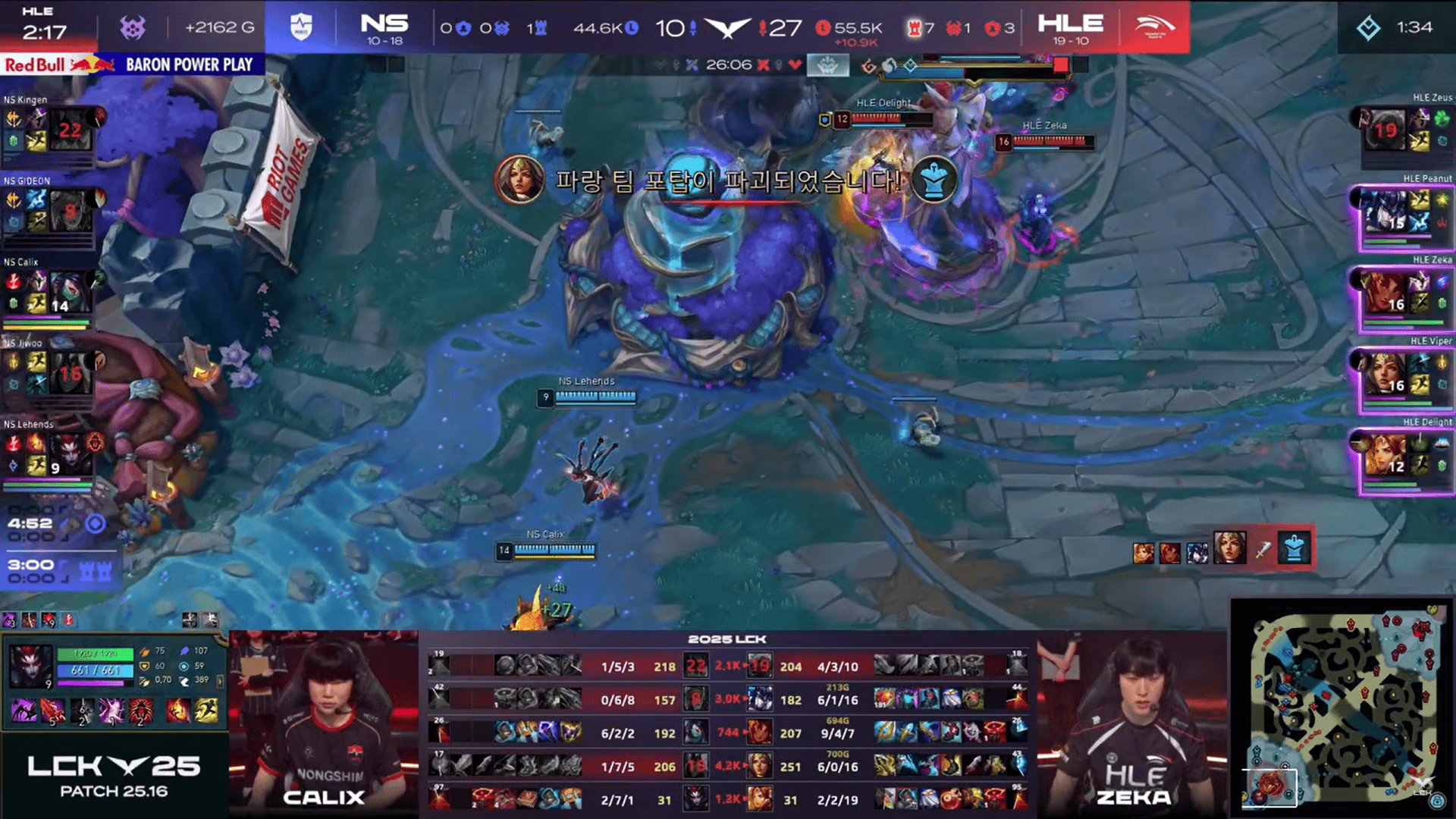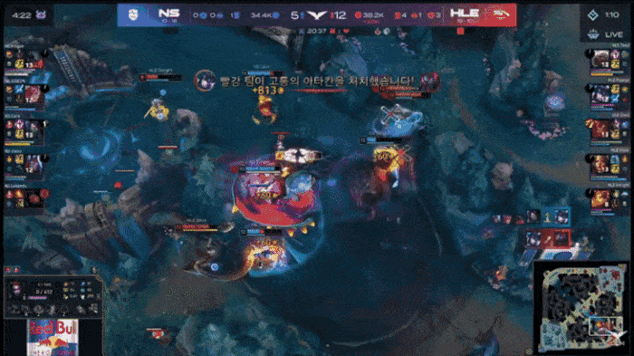 比赛第20分钟,两队爆发厄塔汗团。HLE一波打出2换4打退NS同时拿下厄塔汗。
