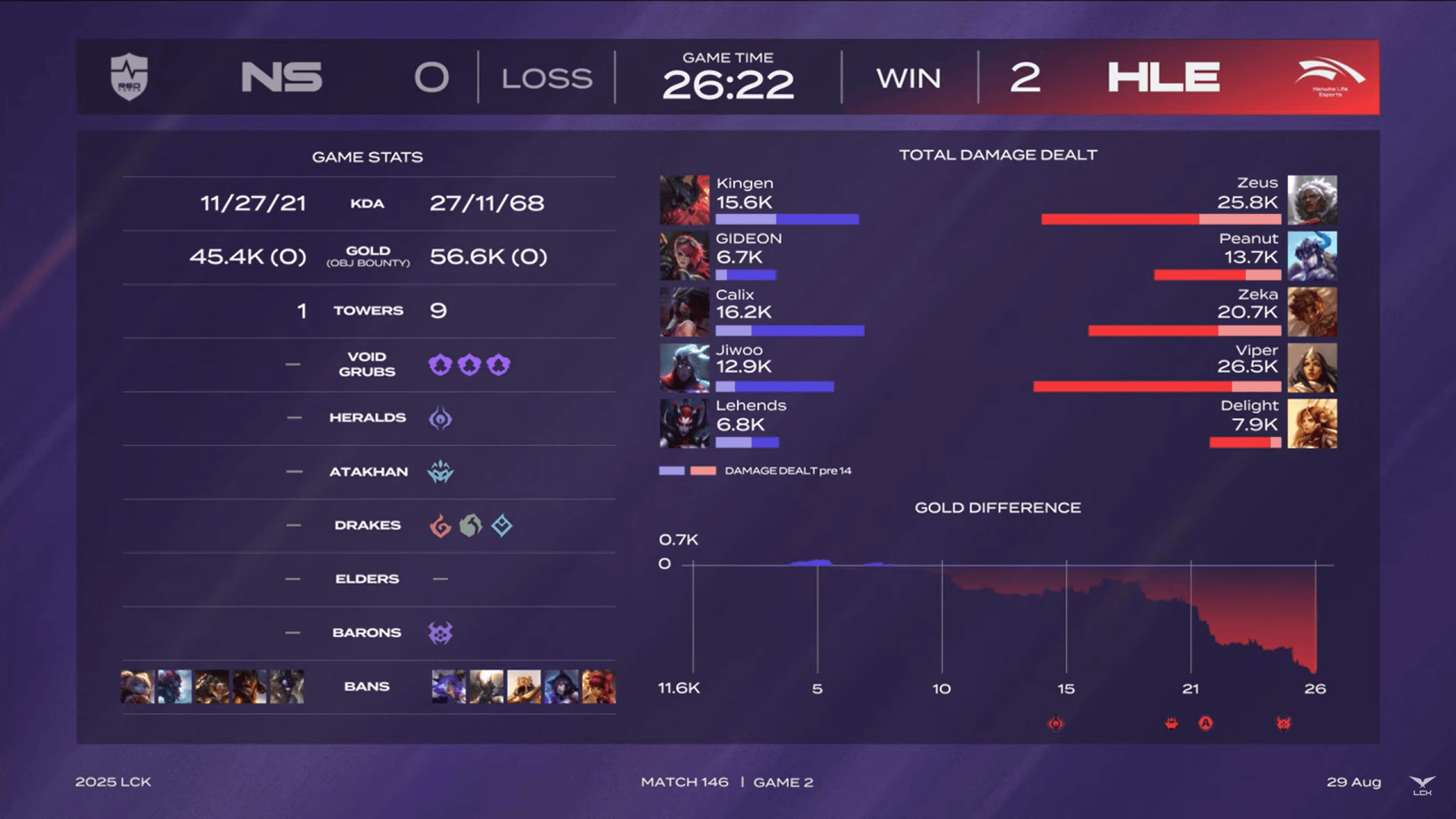 比赛第21分钟,HLE野区先后打出0换5,随后HLE将经济差距拉开到一万以上。