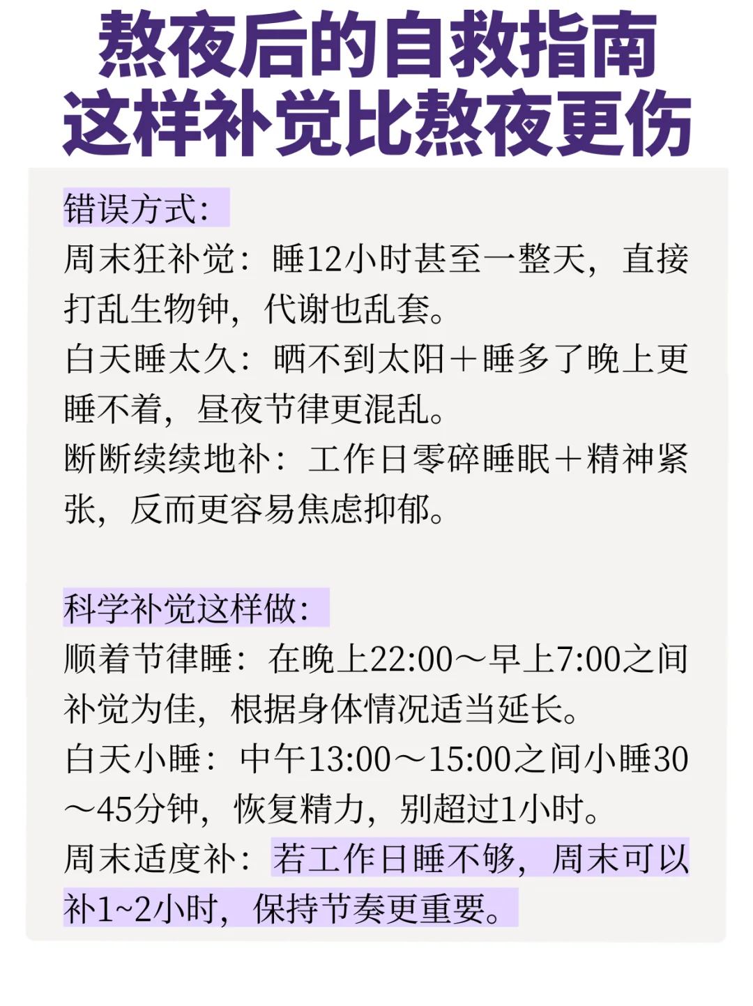 3️⃣ 这样补觉比熬夜伤害还大:过度补觉、白天长时间补觉、不规律补觉。