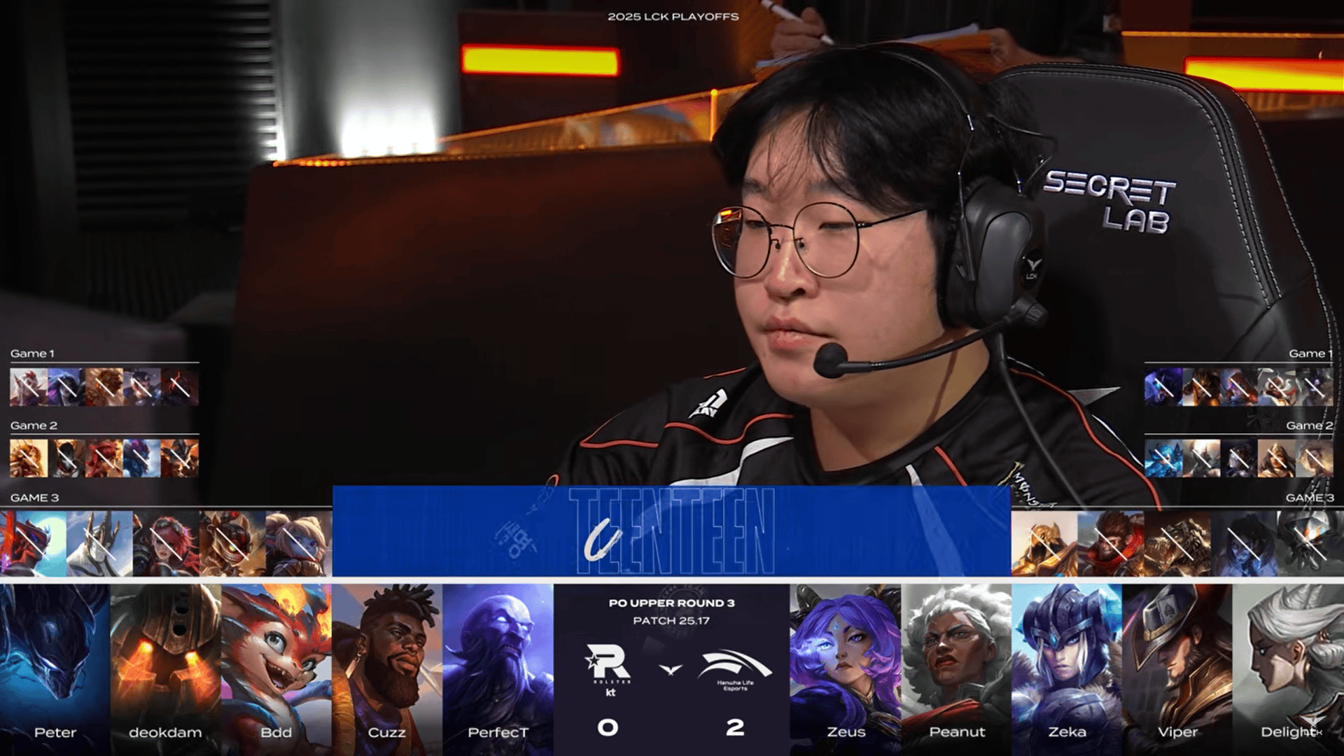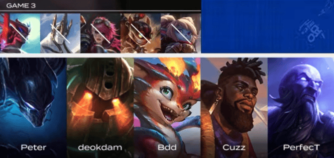 KT选用:PerfecT奎桑提、Cuzz梦魇、Bdd瑞兹、deokdam小火龙、Peter泰坦