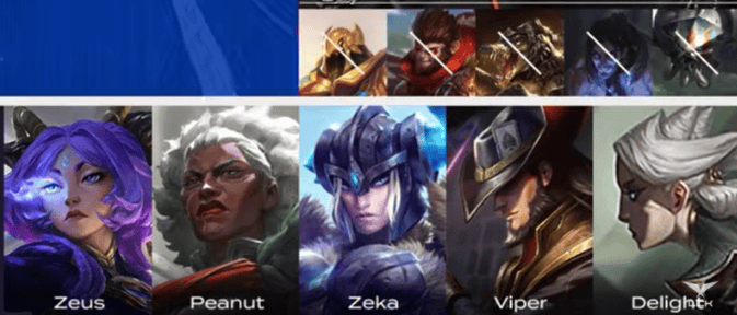 HLE选用:Zeus狼母、Peanut猪妹、Zeka卡牌、Viper芸阿娜、Delight卡蜜尔