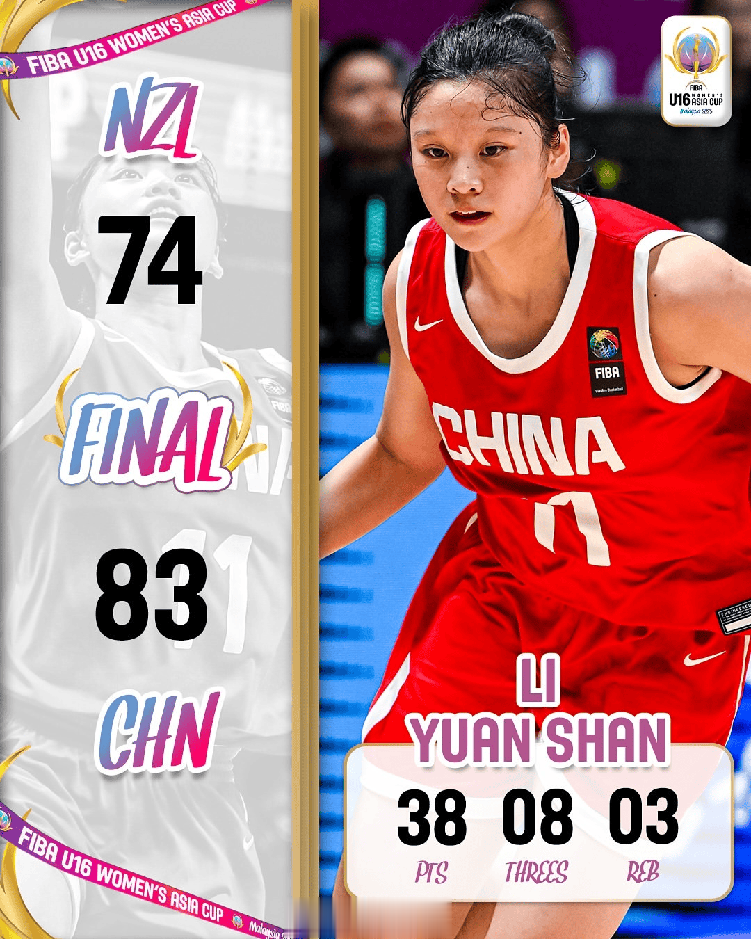 虎扑09月22日讯U16女篮亚洲杯小组赛:中国女篮83-74战胜新西兰。