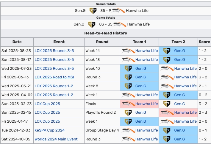 总决赛将在明天下午13点开赛,GENvsHLE;两队今年交手数据如下GEN已经大场6连胜。