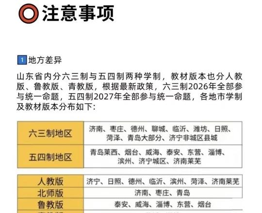 咱就说实话,中考解读! 10:23 5G 青岛佰分冲刺体育 关注 新初一初二及以下孩子的影响山东中考即将“合体”?2026年! 一、改革背景与目标 为促进教育公平与科学选拔,山东省自2023年启动中考命题改革。2025年起,临沂、枣庄、聊城、菏泽、济宁、青岛(道德与法治)等市将逐步采用省级统一命题试卷。改革目标在于: 1.建立"双减"导向的评价体系 2.推动义务教育均衡发展 3.衔接新高考改革方向 二、实施进度与范围 1.2024年试点:语文、数学两科率先统一命题(临沂/枣庄/聊城/菏泽) 2.2026年全面推进:六三学制地区实现9科统考(重点:统考,赋分方式也会趋于一致,未证实消息:录取总分为语数英+物理+道法开卷+体育) 3.2027年学制衔接:五四学制地区完成全科目过渡 三、核心挑战与应对 1.教材差异:省内16市使用7种版本教材,需建立命题标准库 2.学制冲突:五四学制初中多出一年备考时间,六三学制面临适应性调整 3.命题转型:减少记忆性试题,增加探究性、开放性、综合性题目英语交流 外语学习 英语口语 中高考 中考复习 @青岛赛思外语学校