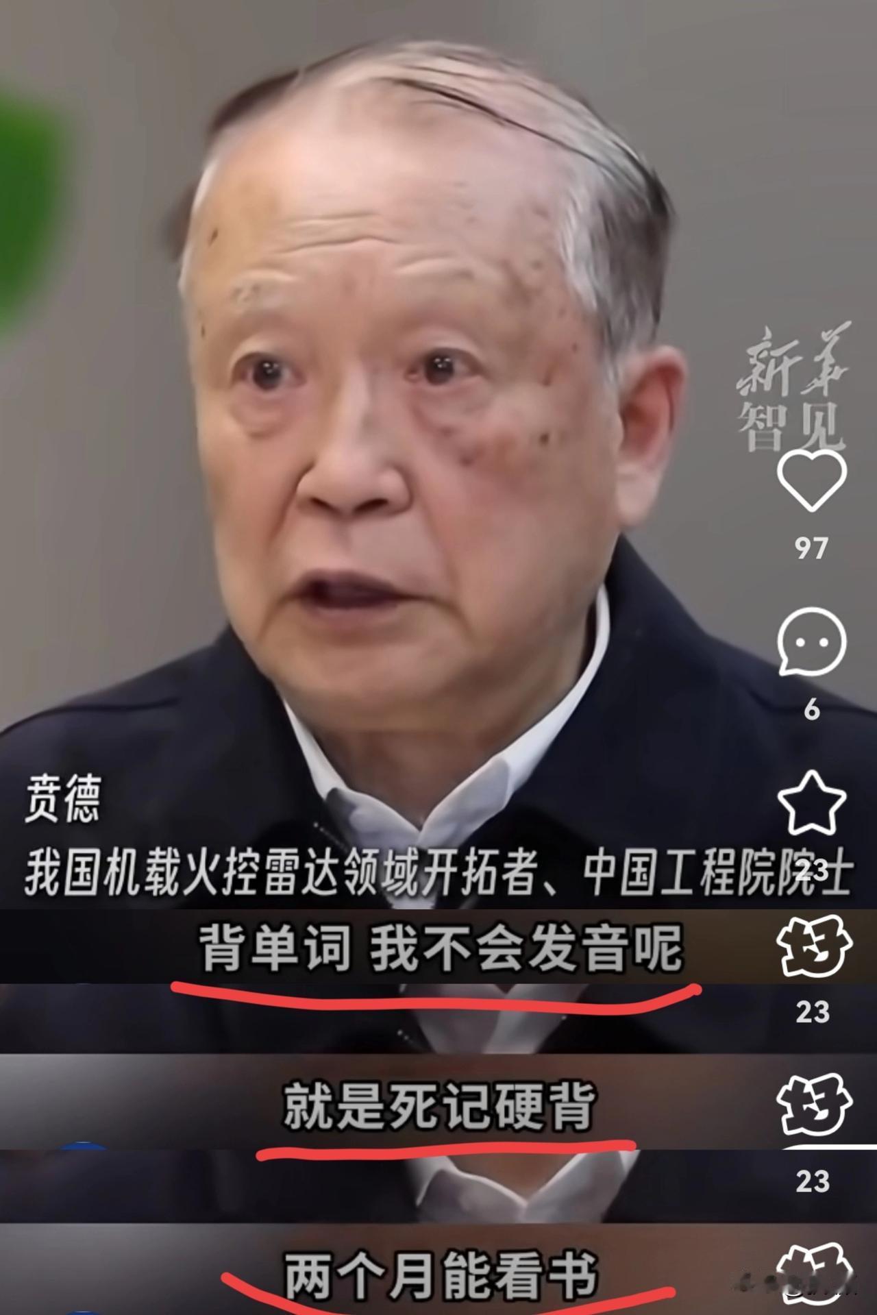 刷到一个新闻,给我看愣住了。 一个搞雷达的院士,英语零基础, 愣是抱着字典啃了俩月英文文献,就为了追上国外技术。 这哪是学英语?分明是拿命在给国家“补课”! 现在人学东西多“精致”?先挑最好的App,再报最贵的课,收藏夹塞满几百G资料,结果从“入门”到“放弃”只用了三天。总怪自己没天赋,可看看贲德那代人,国家穷得叮当响,技术被封得死死的,没老师教就自己当老师,没翻译就一个词一个词抠字典。他们不是在学习,是在用命拼一个“自力更生”的未来!