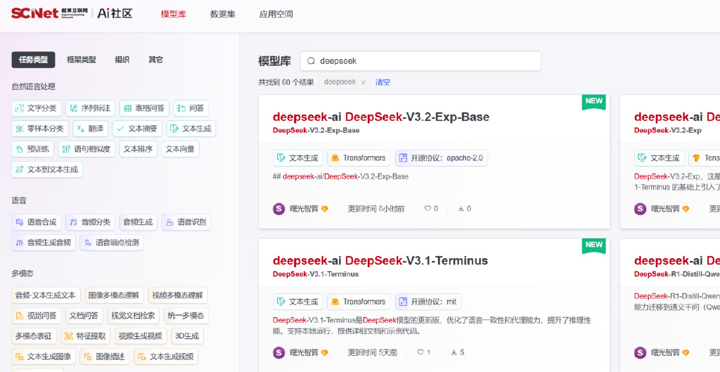 9月30日,依托国产深算智能加速卡以及全国一体化算力网,DeepSeek-V3.2-Exp上线国家超算互联网AI社区,企业和开发者均可在AI社区免费下载DeepSeek-V3.2-Exp模型文件进行快速开发。