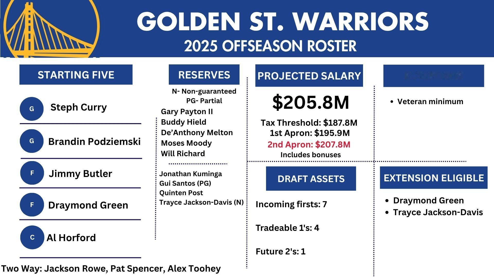 勇士第二土豪线硬帽下还有205.8万空间,需要11月11日之后才能签第15份合同,也就是塞斯·库里这种。