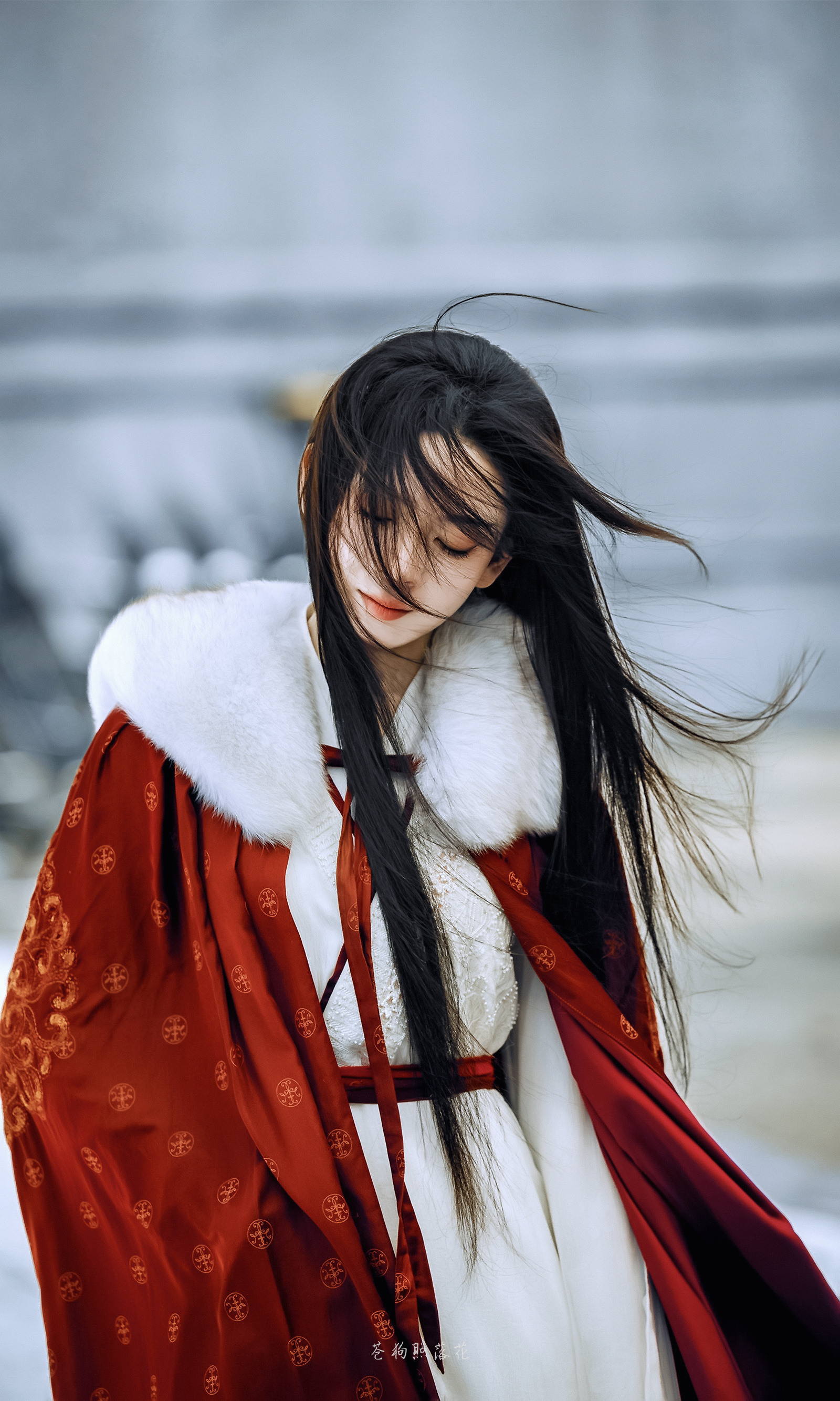 陈瑶 《照镜辞》周若兮壁纸-披发+白衣+红斗篷